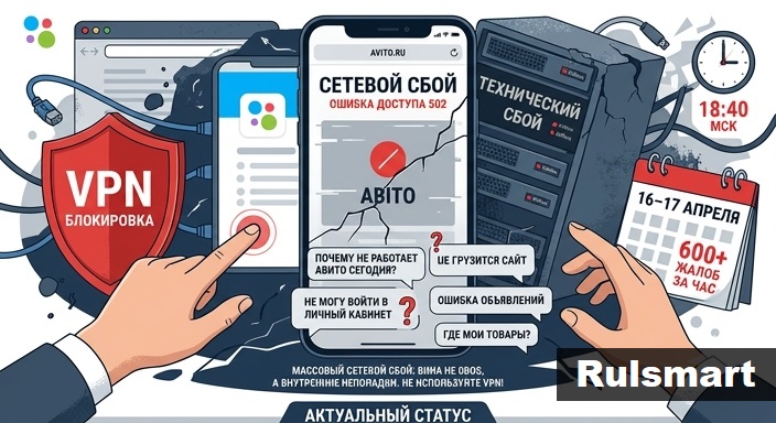 С вечера 16 апреля 2026 года пользователи столкнулись с массовыми проблемами в работе сервиса Авито. География сбоя охватила всю Россию, а к утру 17 апреля количество жалоб начало расти в регионах с восточным временем.