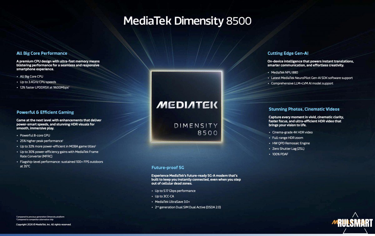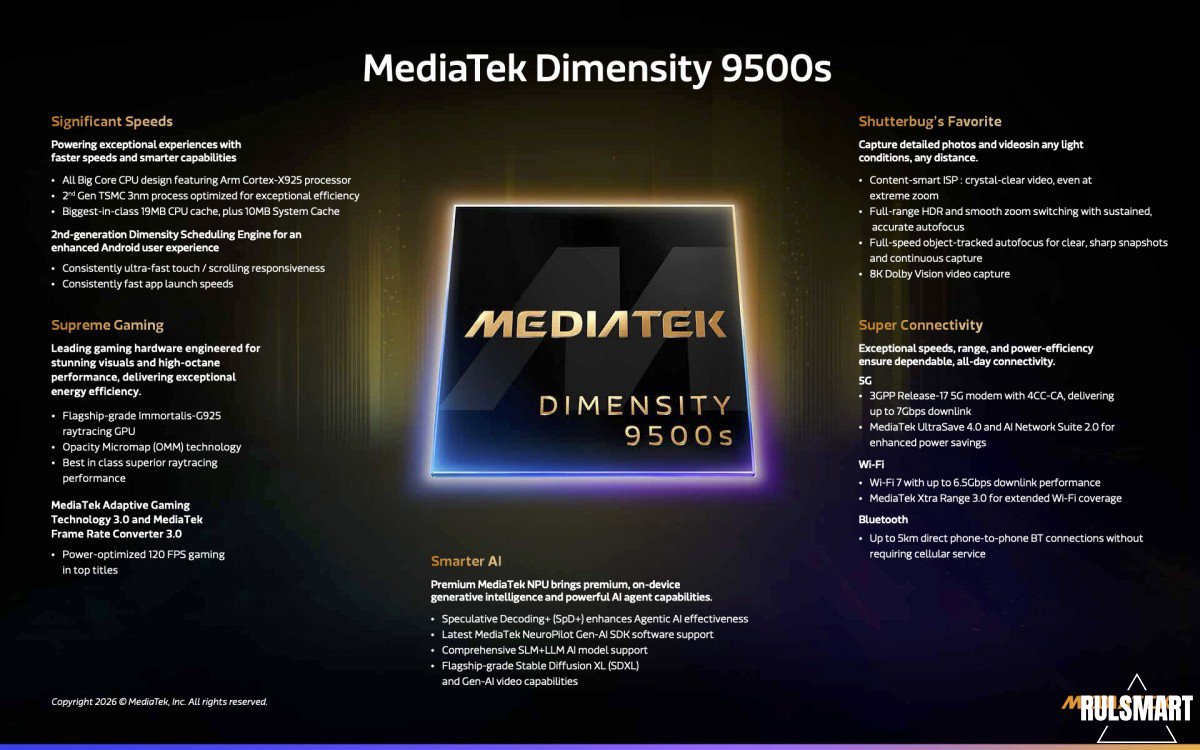 Mediatek представила чипы Dimensity 9500s и 8500 |