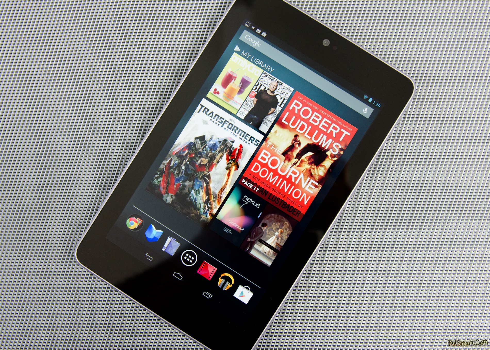 Nexus 7 имеет 7-дюймовый IPS-дисплей с широкими углами обзора (178°), разрешением 1280x800 пикселей и защитным стеклом Corning Fit, поддерживает 10 одновременных касаний что для планшета за 200 «зеленых» очень неплохо, после SGS II картинка не выглядит кислотной ( хотя мне кислотность нравилась), а довольно мягкая и смотрится очень не плохо. Фильмы в hd формате смотреть очень приятно, картинка выгладит действительно хорошо, читать тоже комфортно, буквы видны отчетливо. Минимальная яркость довольно сильная, что делает чтение или «серф» без света ночью, немного утомительным для глаз. Углы обзора хорошие, можно спокойно смотреть фильм нескольким персонам. Единственная проблема экрана- это брак, который есть, это факт.