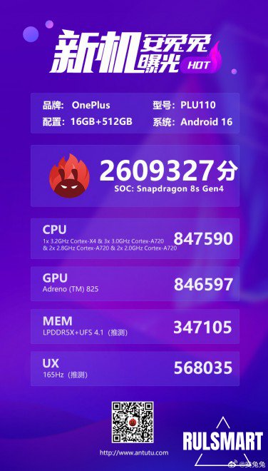 ![]() Компания OnePlus готовится в самое ближайшее время запустить в Китае свою новую линейку игровых смартфонов Turbo. Мы рассказывали несколько дней назад о данных устройствах, а сегодня в сети появился отчет тестирования базовой модели в популярном бенчмарке Antutu. Согласно информации из отчета, у смартфона 16 ГБ оперативной памяти и накопитель на 512 ГБ. Работает же новинка на базе чипа Snapdragon 8s Gen 4 от Qualcomm, модельный номер OnePlus Turbo — PLU110. По результатам тестов, игровой флагман смог набрать 2,6 миллиона баллов. Для сравнения стоит напомнить, что OnePlus 15R на базе Snapdragon 8 Gen 5 набирает 3,168,069, тогда как флагманский OnePlus 15, работающий на Snapdragon 8 Elite Gen 5, может похвастаться 3,688,274 баллами. При этом можно уверенно говорить, что несмотря на отставание от лидера в миллион баллов, OnePlus Turbo будет прекрасно справляться со всеми современными мобильными играми на максимальных настройках графики. Стоит упомянуть, что OnePlus Turbo получит оперативную память LPDDR5X RAM, накопитель UFS 4.1 и дисплей с частотой обновления 165 Гц. Turbo станет смартфоном с самым большим аккумулятором из всех устройств OnePlus. | |