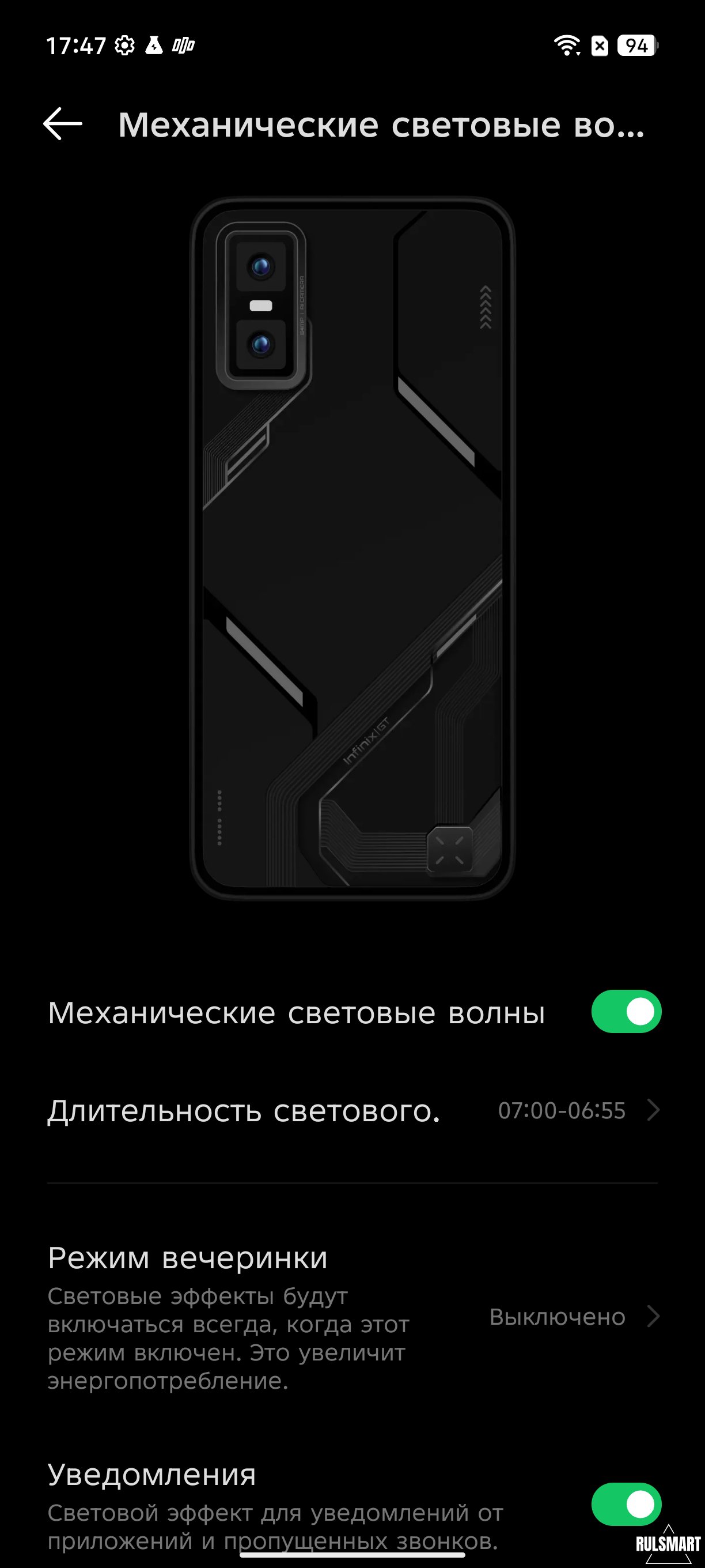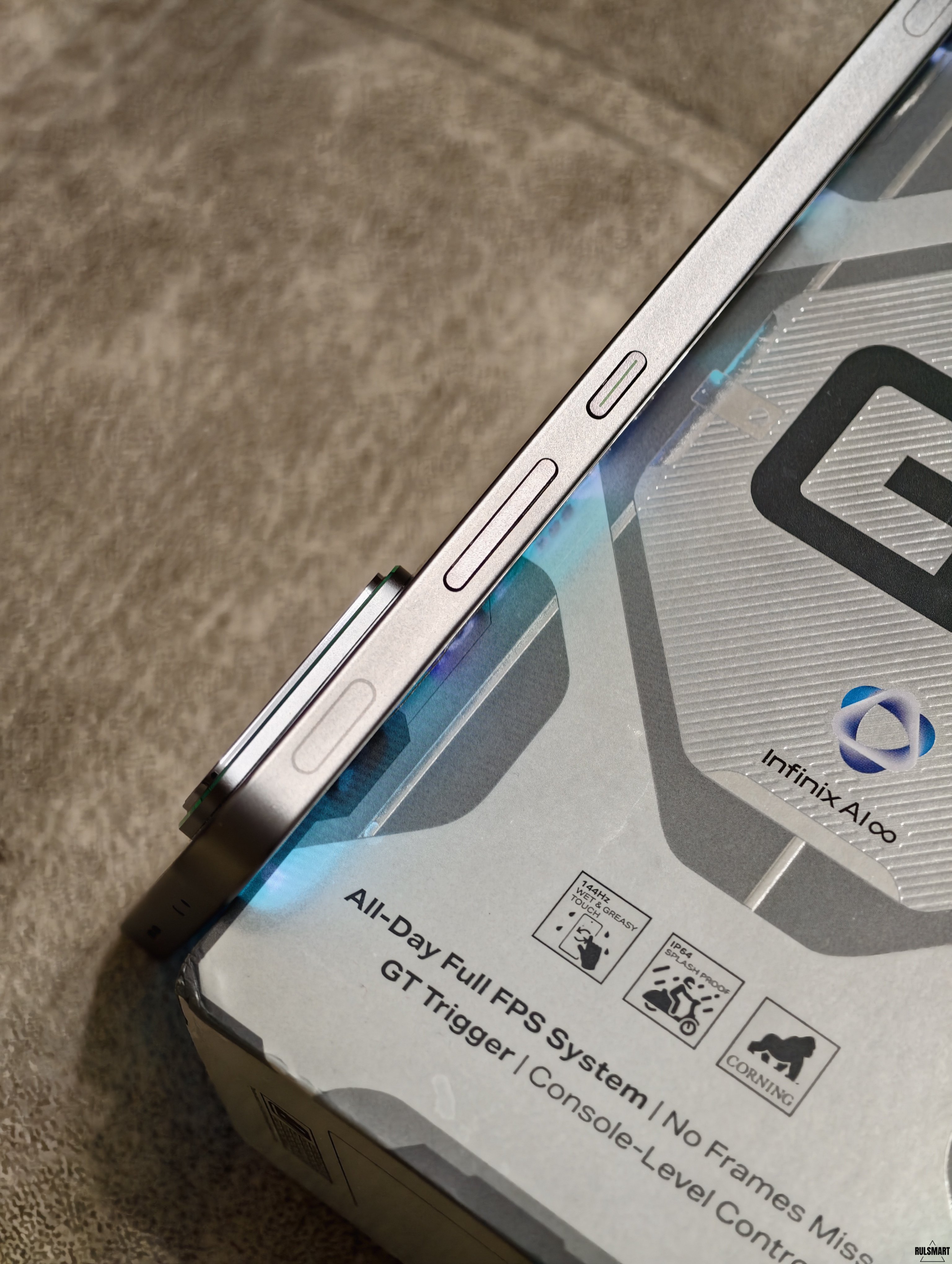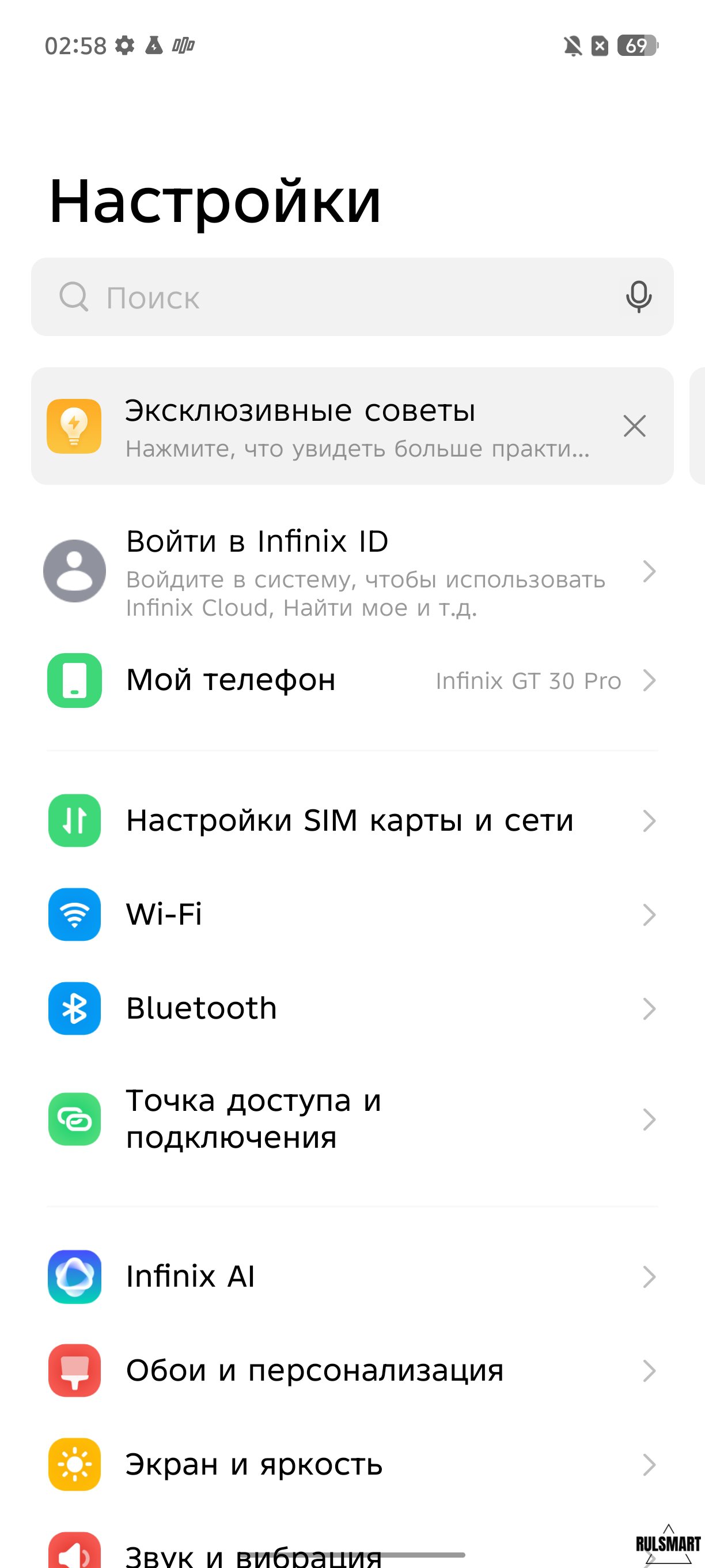 Реклама Внешний вид, дизайн, комплектацияДоставая смартфон из коробки, сразу понимаешь, что перед тобой уникальное устройство, которое выделяется на фоне десятков конкурентов. Задняя крышка стилизована под металл, в нижней части словно нарисованы шлейфы, а по периметру можно увидеть изображения винтов. Подобный футуристический дизайн является не только внешним оформлением, но и имеет ряд функций. На тыльной стороне можно увидеть 4 небольших «окошка», в которые встроена специальная подсветка. Если у вас черная версия смартфона, то у вас RGB-подсветка, тогда как другие варианты расцветки комплектуются белыми светодиодами. В настройках смартфона вы можете выбирать различные сценарии использования этой подсветки. В комплекте со смартфоном идет зарядное устройство мощностью 45 Вт, а также приятный силиконовый чехол, который не перекрывает подсветку тыльной стороны. На правой кромке устройства, помимо привычных регулятора громкости и кнопки включения, находятся 2 дополнительные сенсорные кнопки-триггеры. Они расположены в тех местах, где находятся триггеры на консольных геймпадах, поэтому использовать их в горизонтальном режиме очень удобно. Вы можете назначать на эти сенсорные триггеры любые игровые функции, а использование их вне игр позволяет запускать различные приложения и сервисы. Дисплей, качество матрицыСмартфон, предназначенный для игр, обязан обладать качественным дисплеем. Infinix GT 30 PRO оснащается ярким AMOLED-экраном с диагональю 6,78 дюйма и разрешением 1,5К. Частота обновления дисплея составляет 144 Гц, что позволяет наслаждаться динамичными играми на полную катушку. Сертификат TÜV Rheinland гарантирует минимальный уровень вредного синего излучения, а цветовой охват DCI-P3 обеспечивает насыщенную картинку с яркими и натуральными цветами. Смартфон обладает минимальными рамками, поэтому им просто приятно пользоваться в любых сценариях, а габариты при такой диагонали остаются комфортными для использования. Аппаратная платформа и производительностьСмартфон работает на базе процессора MediaTek Dimensity 8350 Ultimate. Этот чип содержит одно высокопроизводительное ядро Cortex-A715 с частотой 3,35 ГГц, три «средних» ядра Cortex-A715, а также квартет энергоэффективных ядер Cortex-A510 с тактовой частотой 2,2 ГГц. За обработку графики отвечает ускоритель Mali-G615 MP6. Выбор данной системы-на-чипе (SoC) обусловлен её высокой производительностью: Dimensity 8350 набирает в последних версиях бенчмарка AnTuTu порядка 1,6–1,7 миллиона баллов. Объём оперативной памяти составляет 8 или 12 ГБ в зависимости от версии. С помощью программных функций можно расширить размер RAM до 24 ГБ, если это необходимо. Хранилище + поддержка картУ нас на обзоре версия с 512 ГБ постоянной памяти. Как это обычно и бывает, пользователю доступно несколько меньше памяти из-за резерва под операционную систему и прочие системные файлы. Для копирования файлов и загрузки у нас было доступно 462 ГБ, из которых 410 оказались свободными после установки нескольких игр. Таким образом, если вы геймер со стажем и любите играть в разные игры, этого объема встроенного накопителя вам хватит с запасом. Батарея и время работыЁмкость встроенного аккумулятора составляет 5500 мАч. Стоит понимать, что требовательные игры заставляют смартфон работать на максимуме производительности, поэтому время работы от одного заряда составляет ок