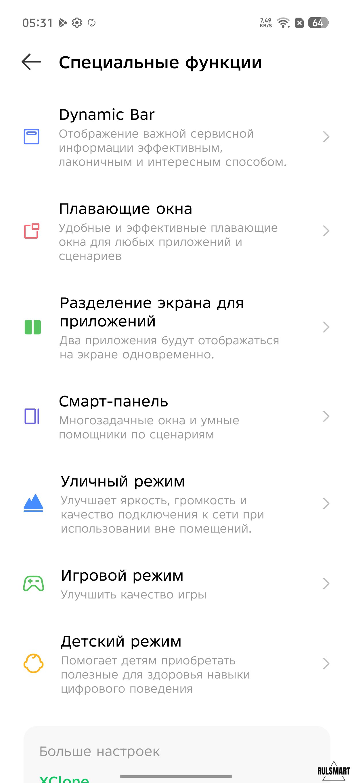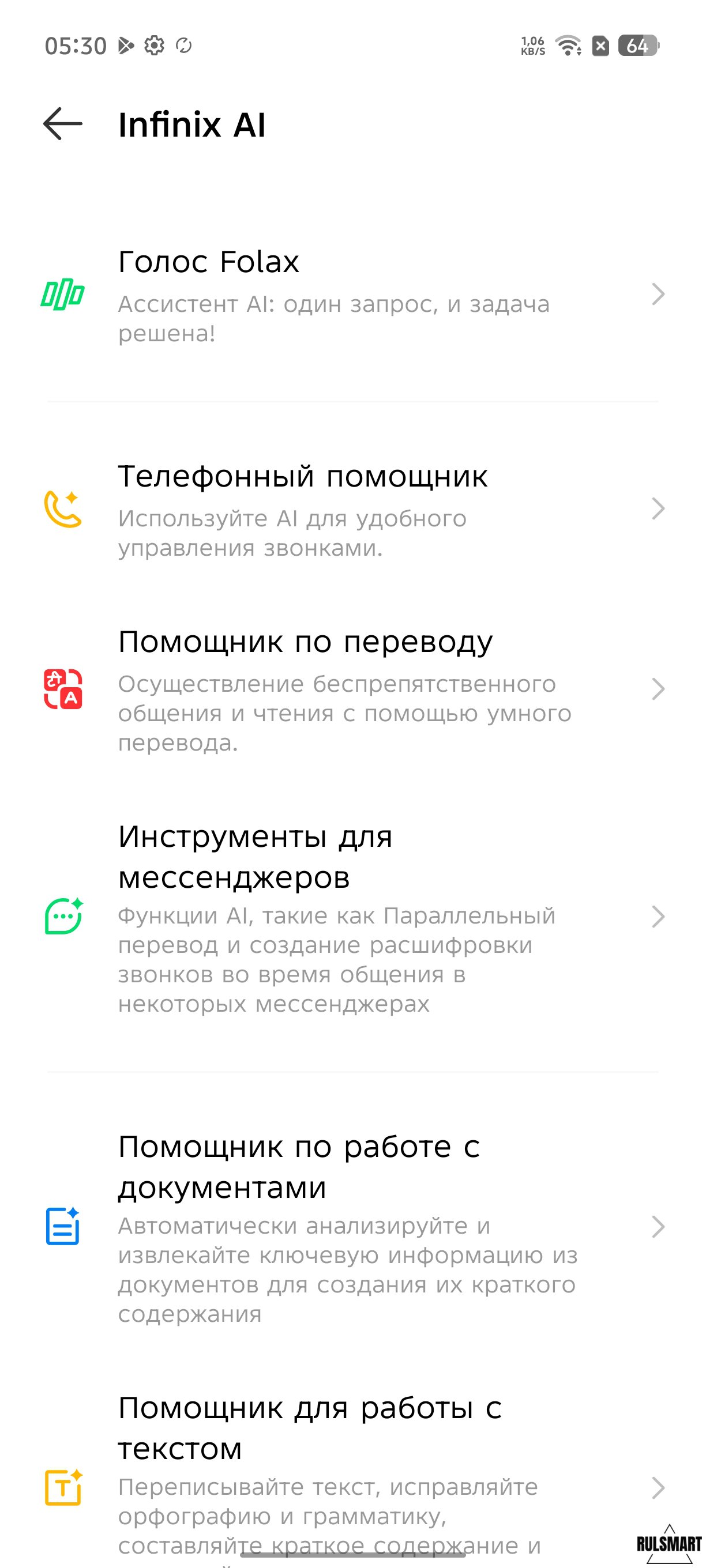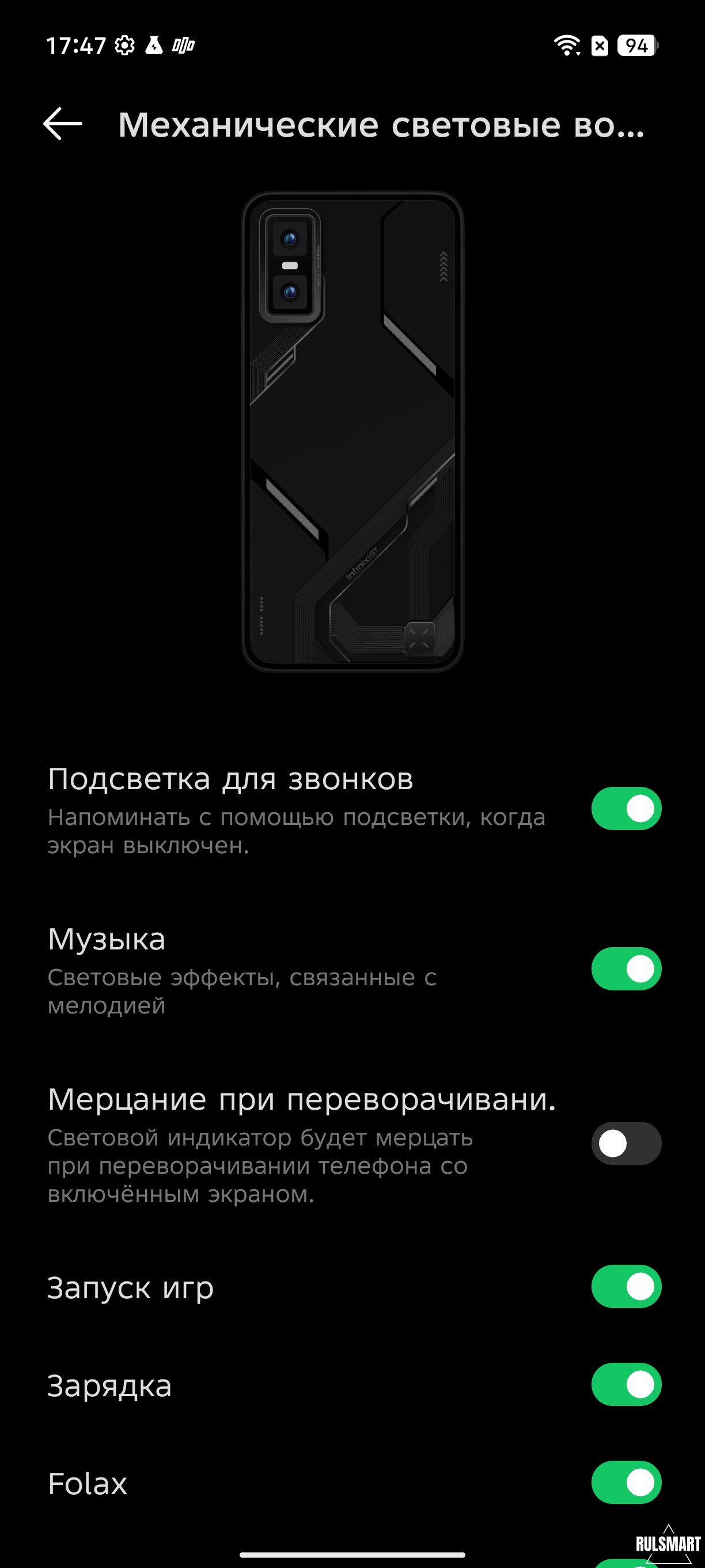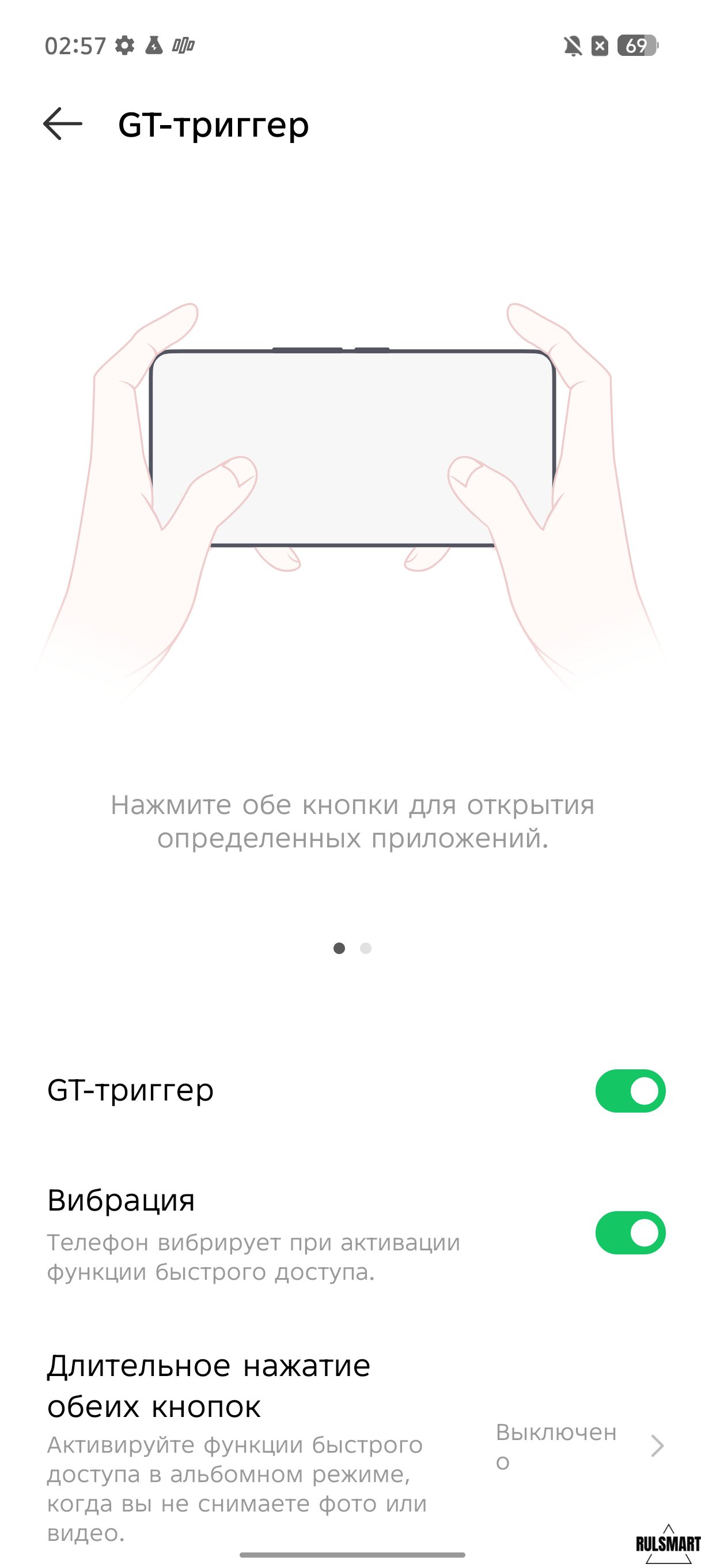 Реклама Внешний вид, дизайн, комплектацияДоставая смартфон из коробки, сразу понимаешь, что перед тобой уникальное устройство, которое выделяется на фоне десятков конкурентов. Задняя крышка стилизована под металл, в нижней части словно нарисованы шлейфы, а по периметру можно увидеть изображения винтов. Подобный футуристический дизайн является не только внешним оформлением, но и имеет ряд функций. На тыльной стороне можно увидеть 4 небольших «окошка», в которые встроена специальная подсветка. Если у вас черная версия смартфона, то у вас RGB-подсветка, тогда как другие варианты расцветки комплектуются белыми светодиодами. В настройках смартфона вы можете выбирать различные сценарии использования этой подсветки. В комплекте со смартфоном идет зарядное устройство мощностью 45 Вт, а также приятный силиконовый чехол, который не перекрывает подсветку тыльной стороны. На правой кромке устройства, помимо привычных регулятора громкости и кнопки включения, находятся 2 дополнительные сенсорные кнопки-триггеры. Они расположены в тех местах, где находятся триггеры на консольных геймпадах, поэтому использовать их в горизонтальном режиме очень удобно. Вы можете назначать на эти сенсорные триггеры любые игровые функции, а использование их вне игр позволяет запускать различные приложения и сервисы. Дисплей, качество матрицыСмартфон, предназначенный для игр, обязан обладать качественным дисплеем. Infinix GT 30 PRO оснащается ярким AMOLED-экраном с диагональю 6,78 дюйма и разрешением 1,5К. Частота обновления дисплея составляет 144 Гц, что позволяет наслаждаться динамичными играми на полную катушку. Сертификат TÜV Rheinland гарантирует минимальный уровень вредного синего излучения, а цветовой охват DCI-P3 обеспечивает насыщенную картинку с яркими и натуральными цветами. Смартфон обладает минимальными рамками, поэтому им просто приятно пользоваться в любых сценариях, а габариты при такой диагонали остаются комфортными для использования. Аппаратная платформа и производительностьСмартфон работает на базе процессора MediaTek Dimensity 8350 Ultimate. Этот чип содержит одно высокопроизводительное ядро Cortex-A715 с частотой 3,35 ГГц, три «средних» ядра Cortex-A715, а также квартет энергоэффективных ядер Cortex-A510 с тактовой частотой 2,2 ГГц. За обработку графики отвечает ускоритель Mali-G615 MP6. Выбор данной системы-на-чипе (SoC) обусловлен её высокой производительностью: Dimensity 8350 набирает в последних версиях бенчмарка AnTuTu порядка 1,6–1,7 миллиона баллов. Объём оперативной памяти составляет 8 или 12 ГБ в зависимости от версии. С помощью программных функций можно расширить размер RAM до 24 ГБ, если это необходимо. Хранилище + поддержка картУ нас на обзоре версия с 512 ГБ постоянной памяти. Как это обычно и бывает, пользователю доступно несколько меньше памяти из-за резерва под операционную систему и прочие системные файлы. Для копирования файлов и загрузки у нас было доступно 462 ГБ, из которых 410 оказались свободными после установки нескольких игр. Таким образом, если вы геймер со стажем и любите играть в разные игры, этого объема встроенного накопителя вам хватит с запасом. Батарея и время работыЁмкость встроенного аккумулятора составляет 5500 мАч. Стоит понимать, что требовательные игры заставляют смартфон работать на максимуме производительности, поэтому время работы от одного заряда составляет ок